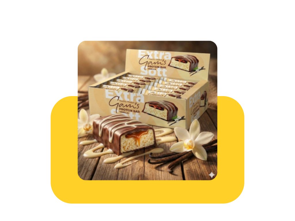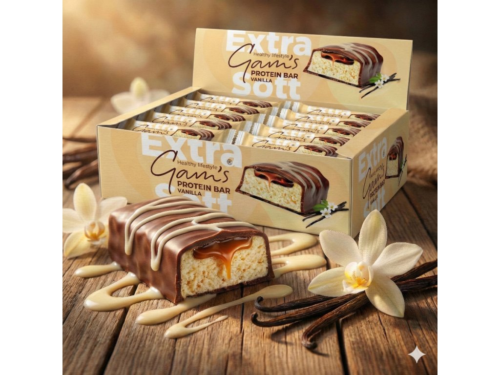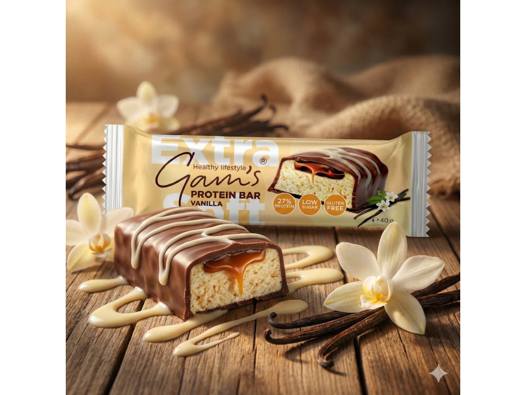 Gam’s PROTEIN TYČINKA VANILKA EXTRA-SOFT spojuje delikátní, krémovou chuť pravé vanilky s neuvěřitelně měkkou a nadýchanou strukturou, která se rozplývá na jazyku. Každé sousto přináší pocit jemnosti, čistoty a potěšení – přesně tak, jak má chutnat kvalitní proteinový snack.